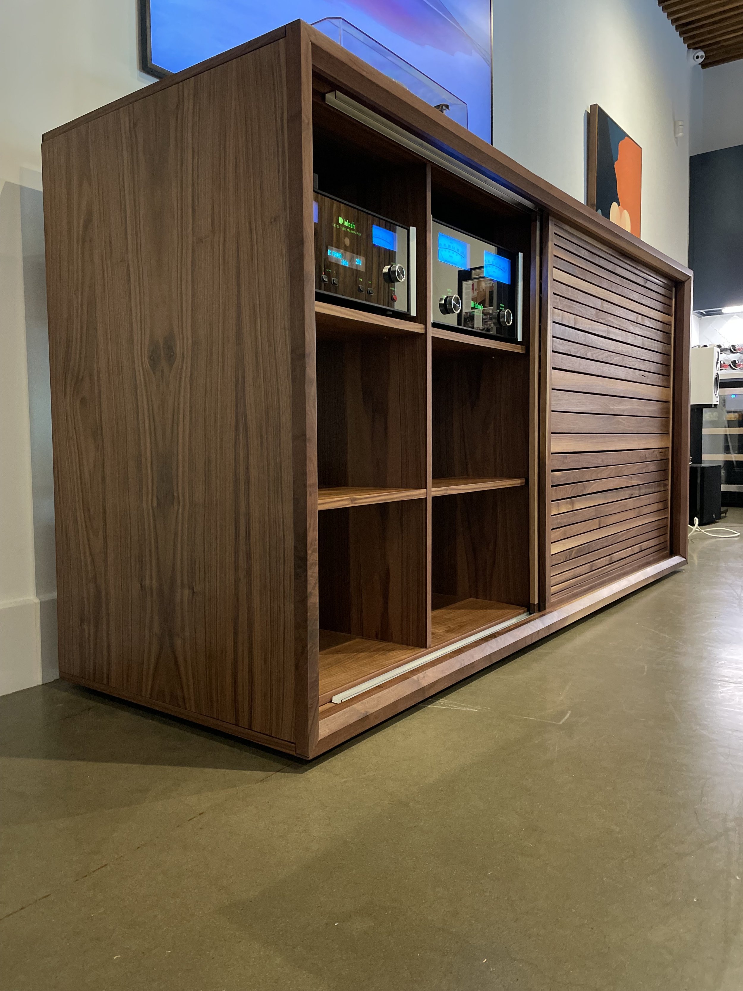 This console was designed and built by my studio for a licensed McIntosh showroom. It acted as a case study for future flat-pack systems, validating that quality, mobility, and versatility can co-exist within the high-end furniture industry.